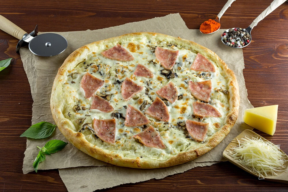 Пицца Ветчина/грибы 28 см. АКЦИЯ (Товар в подарок)